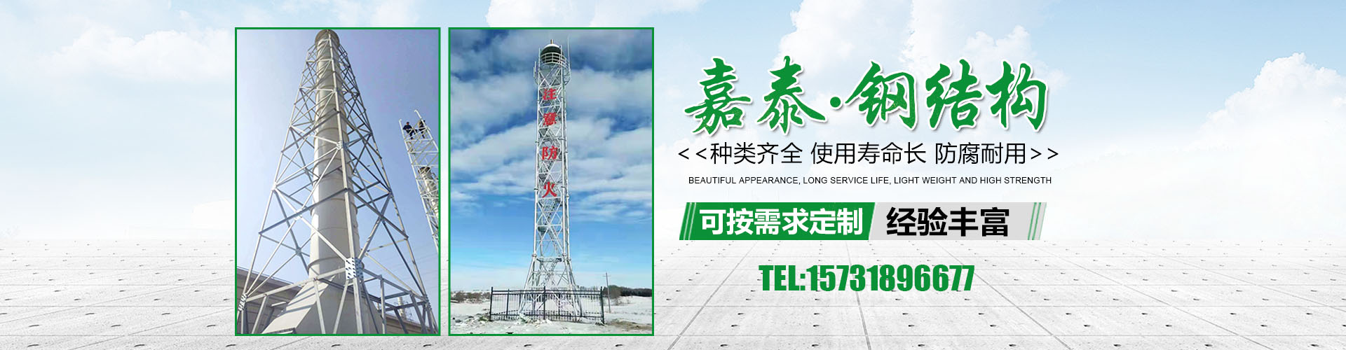 衡水嘉泰鋼結(jié)構(gòu)有限公司位于鐵塔制造之鄉(xiāng)-衡水市景縣廣川經(jīng)濟(jì)開發(fā)區(qū),石德、京九鐵路交匯處,距北京、天津、石家莊、濟(jì)南均在2小 時(shí)交通圈內(nèi),交通便利。公司主要產(chǎn)品有:避雷塔、監(jiān)控塔、瞭望塔、消防訓(xùn)練塔、電力架構(gòu)、樓頂工藝塔、廣播電視塔、煙囪塔、測(cè)風(fēng)塔 、電力塔、單管塔、雷達(dá)塔、仿生樹塔、氣象觀測(cè)塔、路燈桿,一體化基站、ETC龍門架等,是一家集設(shè)計(jì),生產(chǎn),運(yùn)輸,安裝,維護(hù)為一體的廠家。主要服務(wù)于鐵塔公司、通信三大運(yùn)營(yíng)商、國(guó)防通訊,鐵路及森 ......